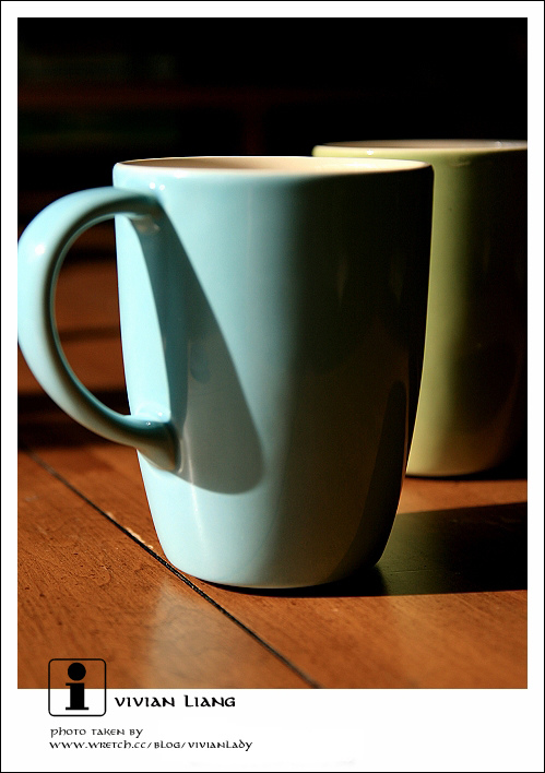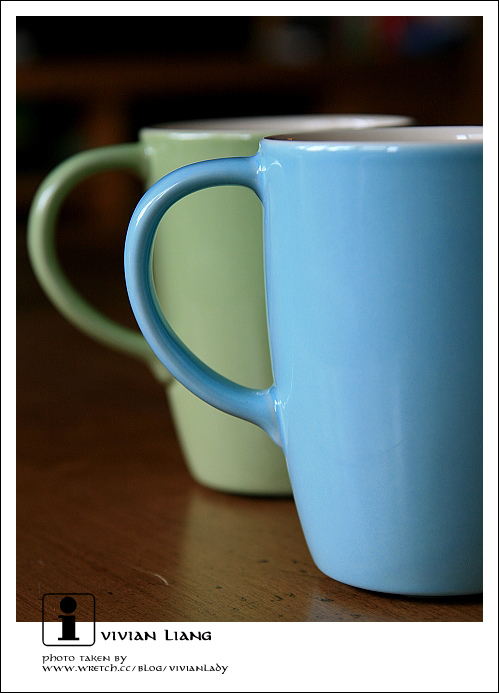 踩著疲累的步伐在街心覓食,一間探望向另一間,還沒揀定哪家餐廳,到是被行經的「生活工場」給吸引。選了兩只手感厚實的馬克杯,顏色單一顯得執著,杯身不加任何綴飾見它更是穩重。一只檸檬草綠顏色、一只土耳其藍,大地的色彩永遠都是那麼地清爽、溫暖而充滿力量,有一種拾一把原鄉的土泥在鼻前嗅一嗅的安然與實在。顏色有一種神奇的作用,總能向靈敏的感知宣告它特有的溫度與安撫。抱著這直樸飽滿的二彩貼在心口,感覺很能撫慰在異鄉拼搏了一天失魂又落魄的心靈:這心靈看不出若是繼續前行,明天將是更好?還是比今天更壞?…我感性衝動的購物恣態在店舖裡昏黃的燈光下,被催化的又更快了。