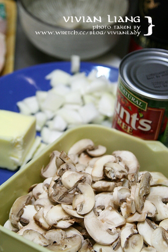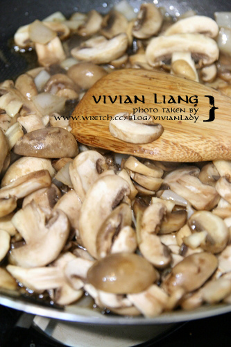 小蘑菇切片,洋蔥細切。