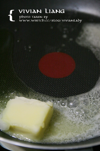 ↑1 tbsp. 橄欖油先熱油鍋,橄欖油可以讓雞肉表面定型不會因為長時間燉煮而散掉。再把60g奶油鍋內融化。