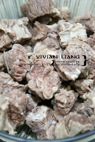 牛肉(牛腩或牛鍵或各半)1.5斤,汆燙去血水備用。