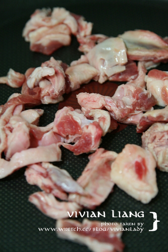↑牛肉用剪刀剪去部份脂肪。汆燙去血水備用。