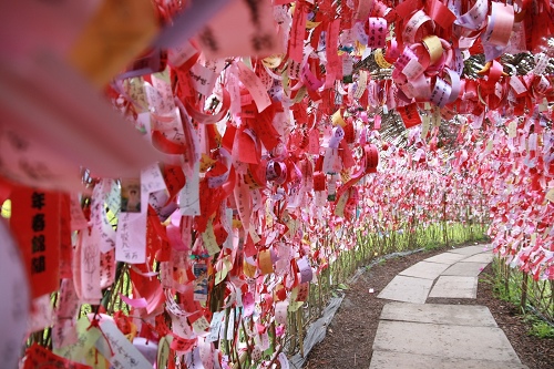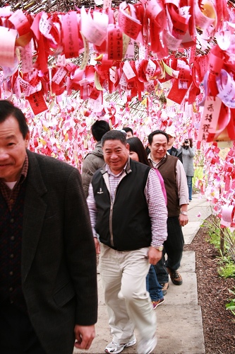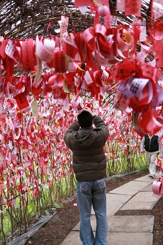 三星花海裡的銀柳隧道,繫滿了色彩繽紛的祈福許願條,每個字條上都是愛你的人與你愛的人對彼此深深地祝福與殷殷地期盼。走在這些充滿愛的文字底下,渾身沾染了喜氣,感覺自已也充滿了愛人的能力與詳和平安。